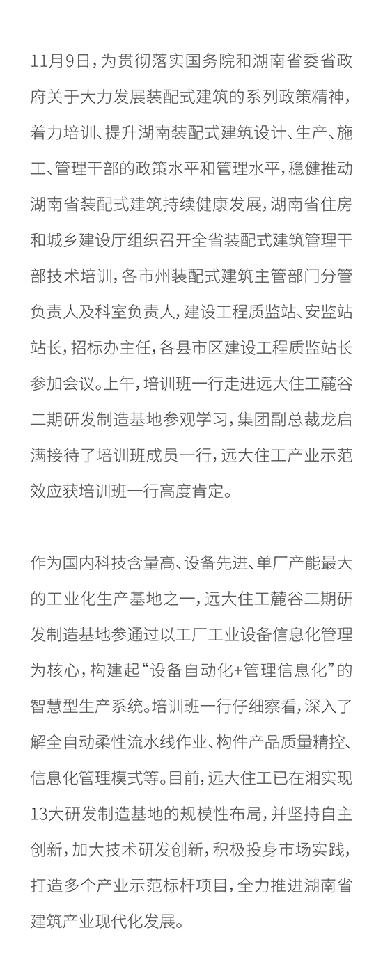 湖南省裝配式建筑管理干部技術培訓在長舉行 遠大住工產業示范效應獲肯定