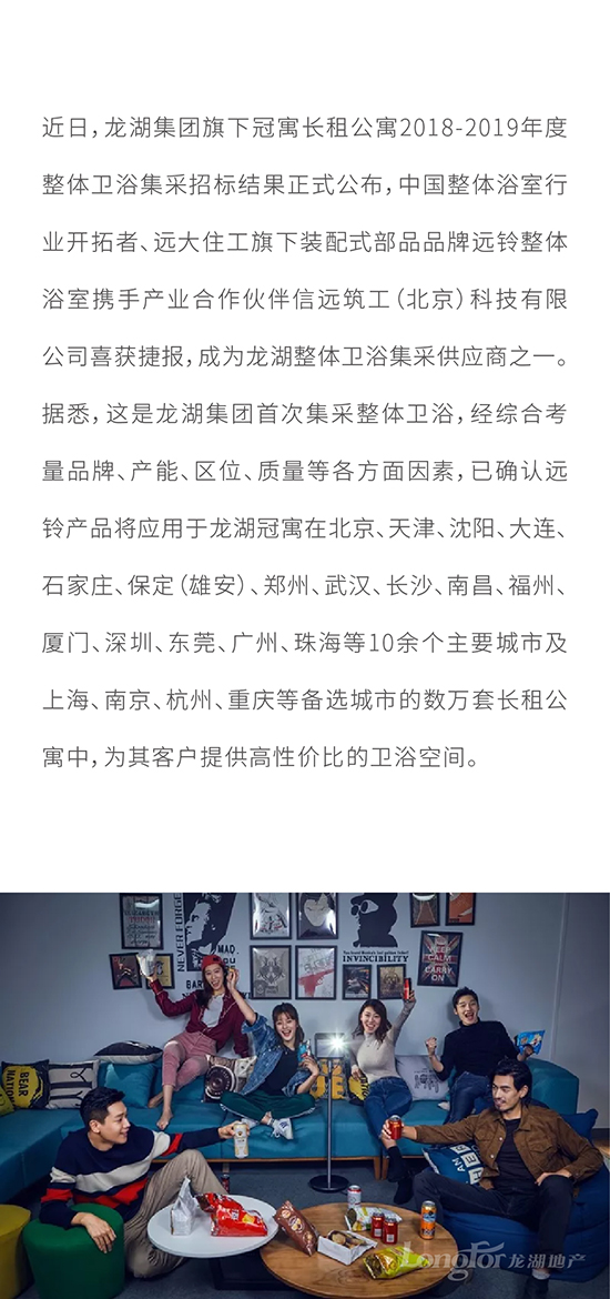 遠(yuǎn)鈴整體浴室中標(biāo)龍湖冠寓集采
