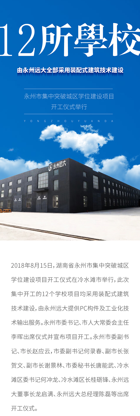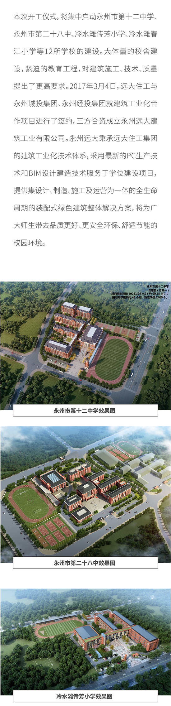12所學校由永州遠大全部采用裝配式建筑技術建設 永州市集中突破城區學位建設項目開工儀式舉行