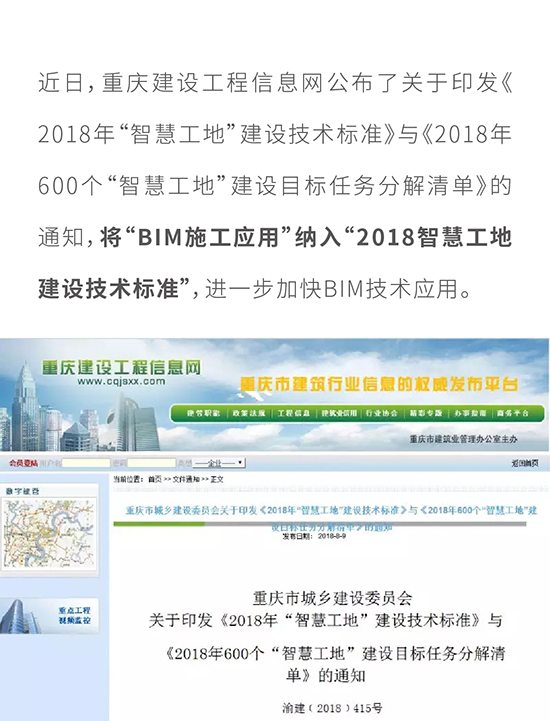 重慶市將“BIM施工應(yīng)用”納入 “2018智慧工地建設(shè)技術(shù)標(biāo)準(zhǔn)”!