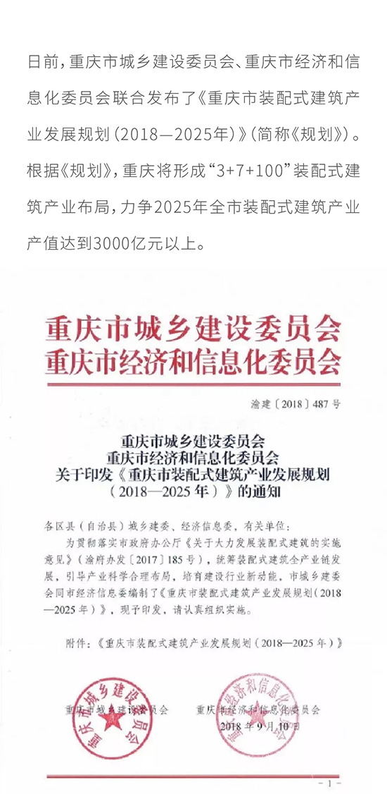 最新|重慶市出臺裝配式建筑產(chǎn)業(yè)發(fā)展規(guī)劃(2018—2025年),力爭2025年裝配式建筑產(chǎn)業(yè)產(chǎn)值達到3000億元以上
