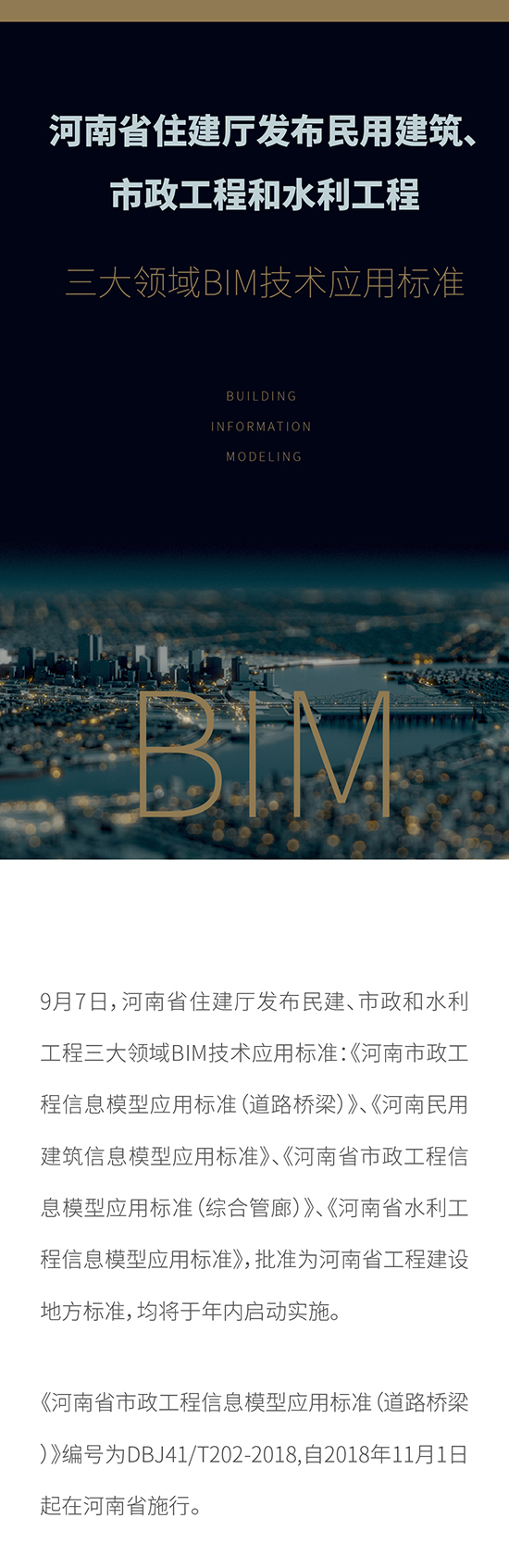 河南省住建廳發布民用建筑、市政工程和水利工程 三大領域BIM技術應用標準